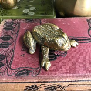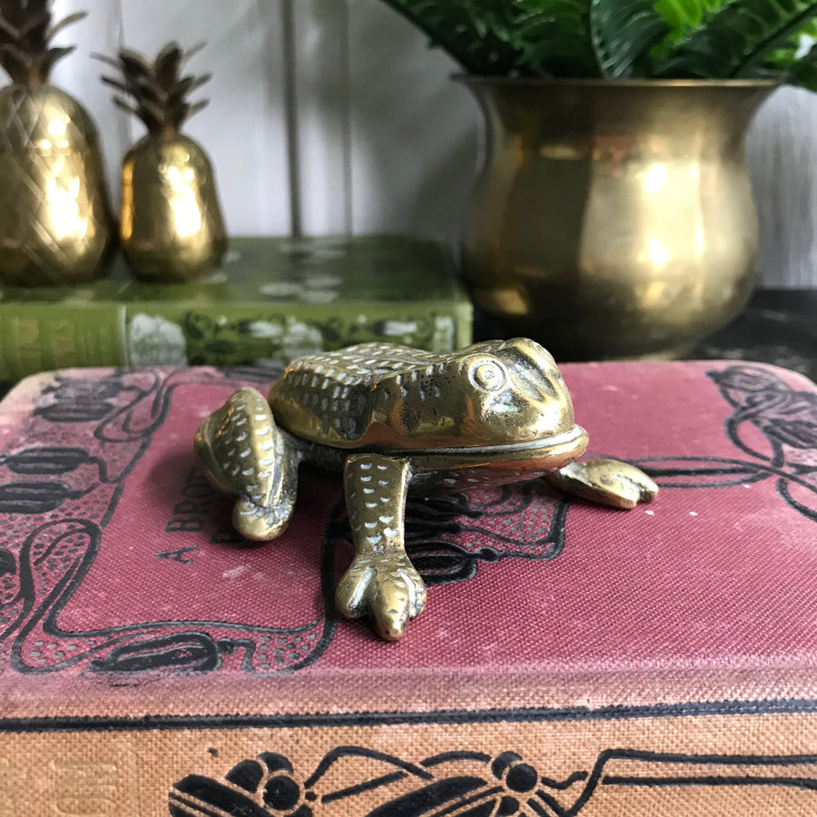 A beautiful vintage brass frog, that can be used as a trinket box or ornament. The perfect accessory to enhance your interior styling!