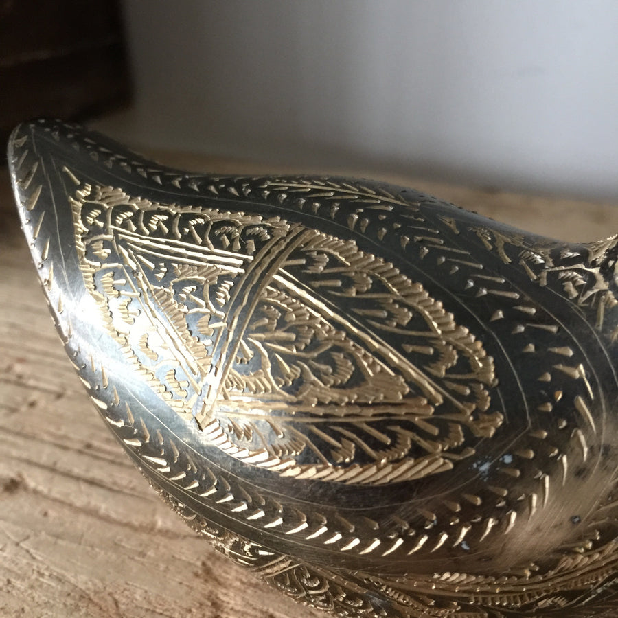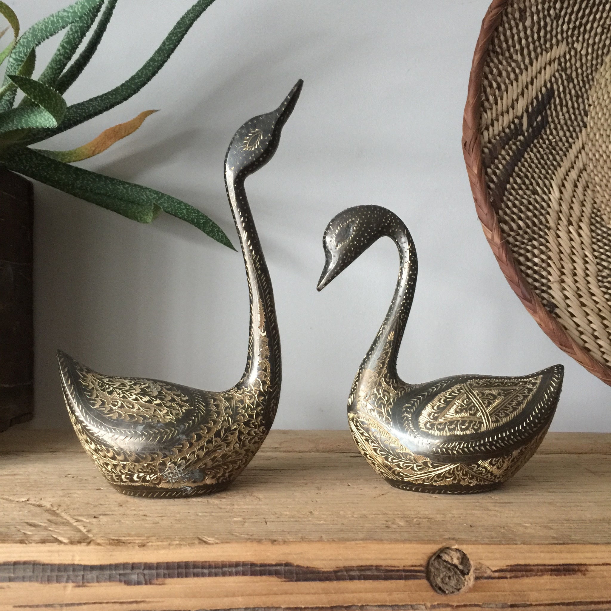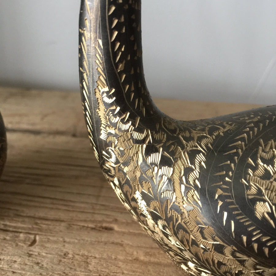 Vintage Brass Pair of Engraved Swans