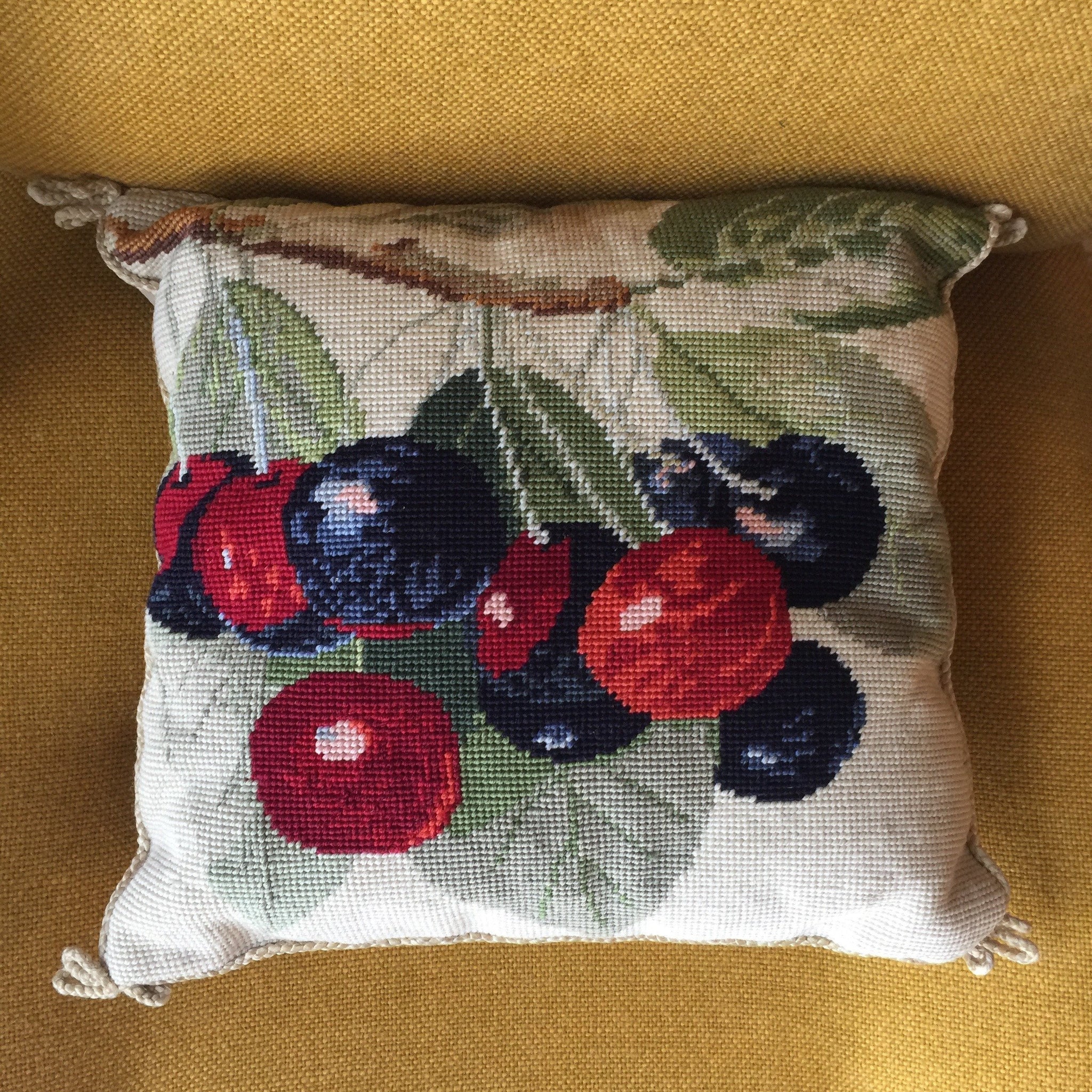 Add a 'pop' of colour to your interior with this cute embroidered cherry cushion. At the time of listing we also have an apple and cherry cushion... so you can mix it up!