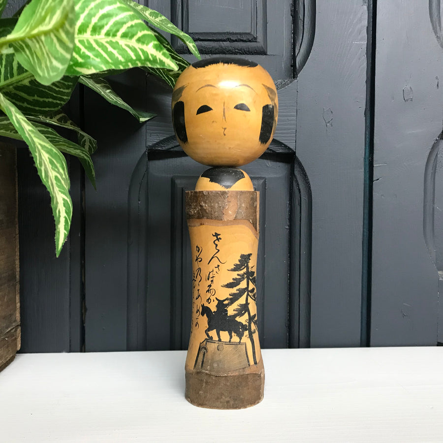 A stunning vintage Kokeshi Doll from Japan who we've named Hekima (meaning wisdom). Hand turned and painted with a beautiful monochrome landscape design - totally unique!