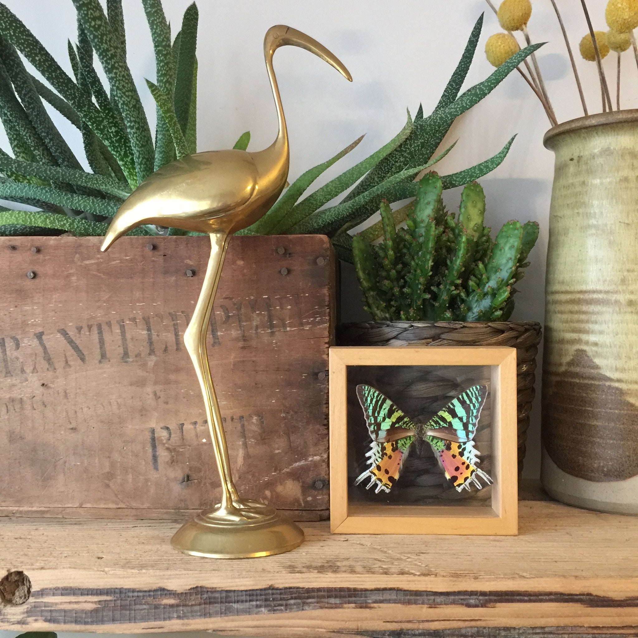 A lovely, decorative Mid Century brass crane, a perfect accessory to place on your vintage furniture or shelf.