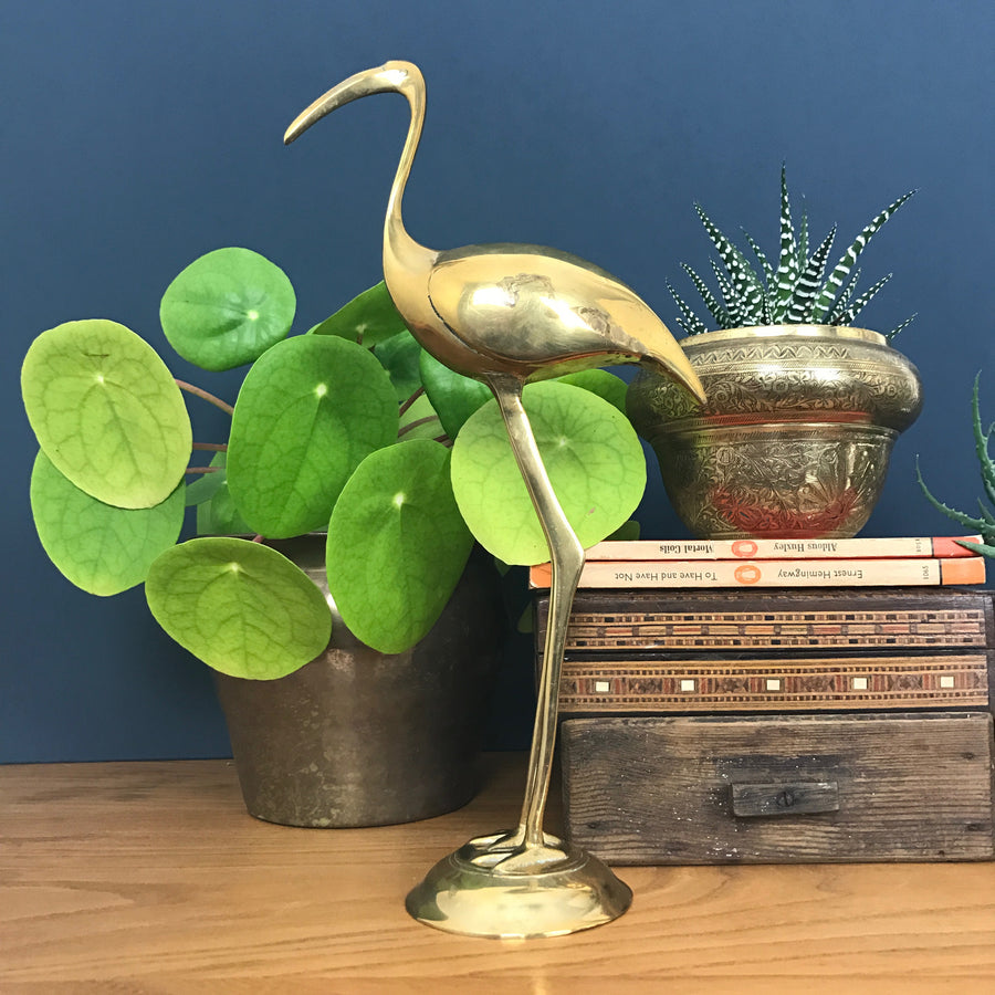 A lovely, decorative Mid Century brass crane, the perfect accessory to place on your vintage furniture or shelf, and to add some gold tones to your interior styling.