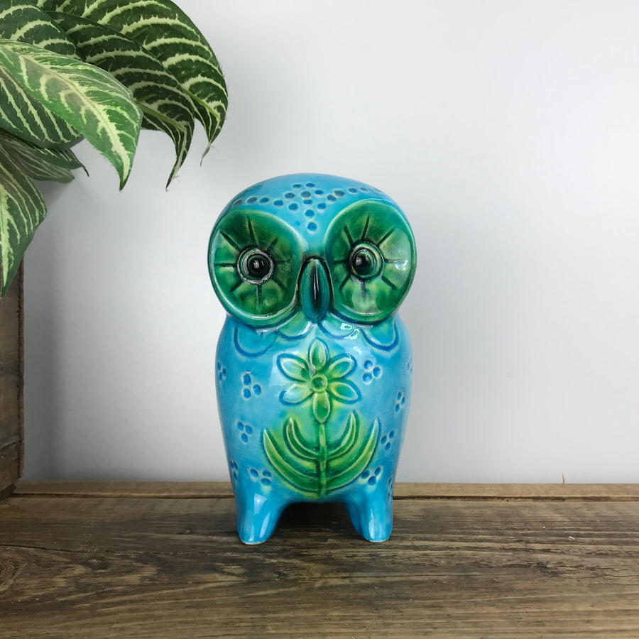 Vintage 'Jema' from Holland ceramic owl money box. Featuring a beautiful blue and green pattern finish. We think it's rather twit twoo - do you?