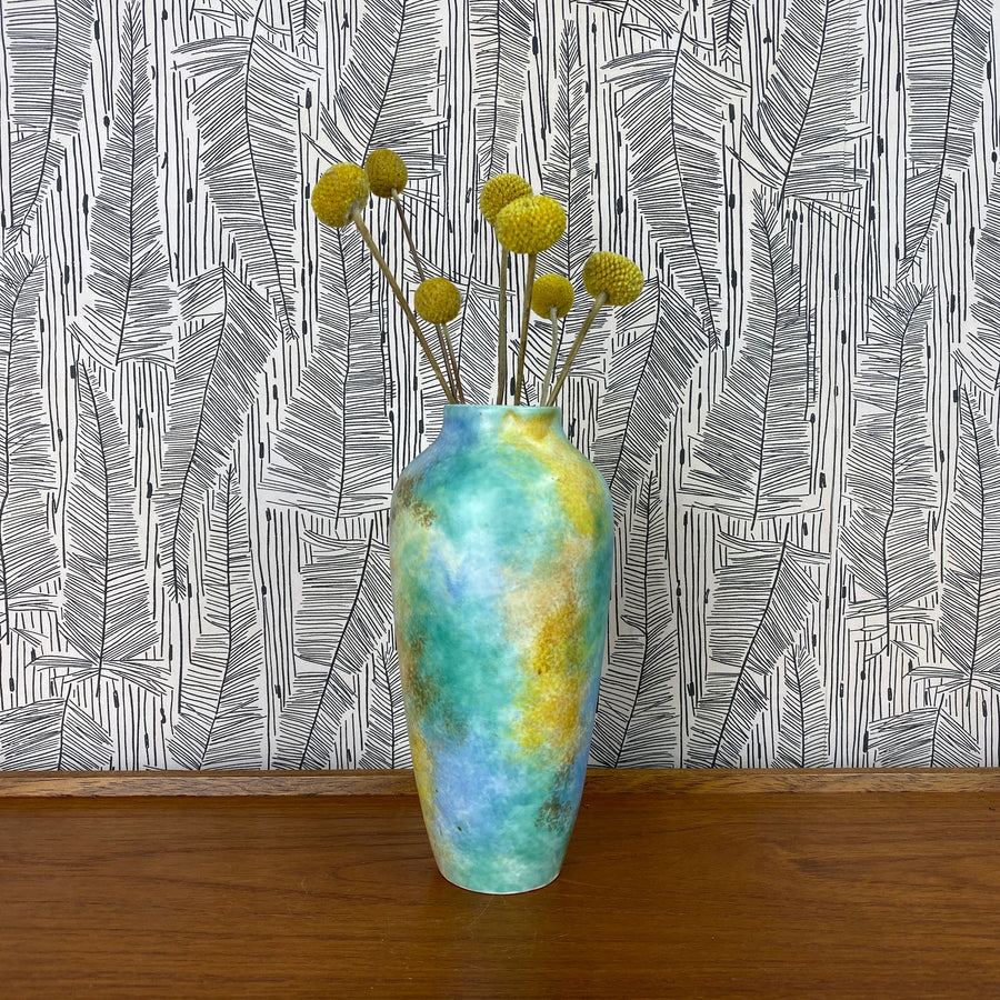A striking vintage ceramic vase featuring lovely bright hues of colour.