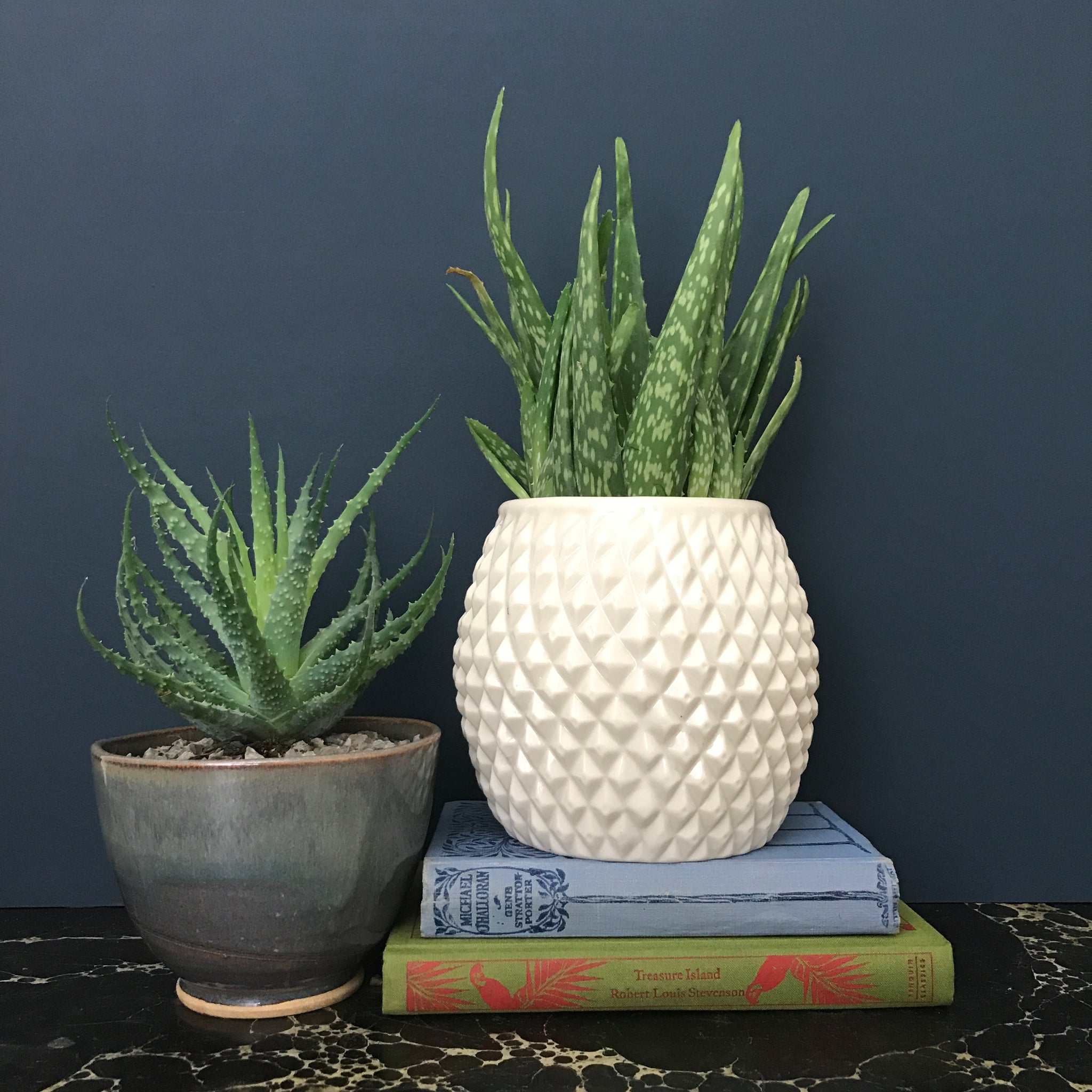 Vintage ceramic pot/vase/planter which looks like a pineapple with the right plant in! Perfect for showing off your greenery, and also adds a touch of humour to your styling!
