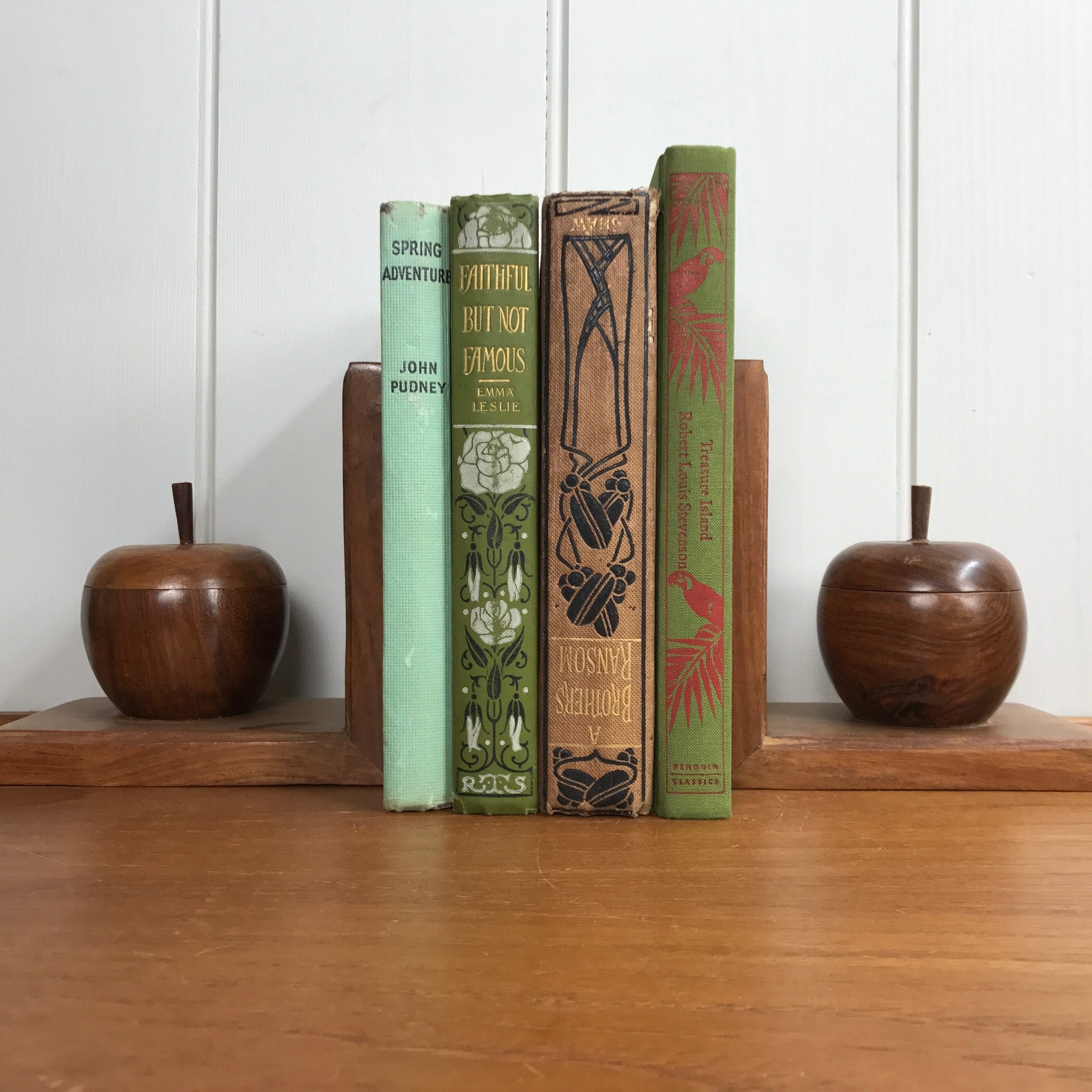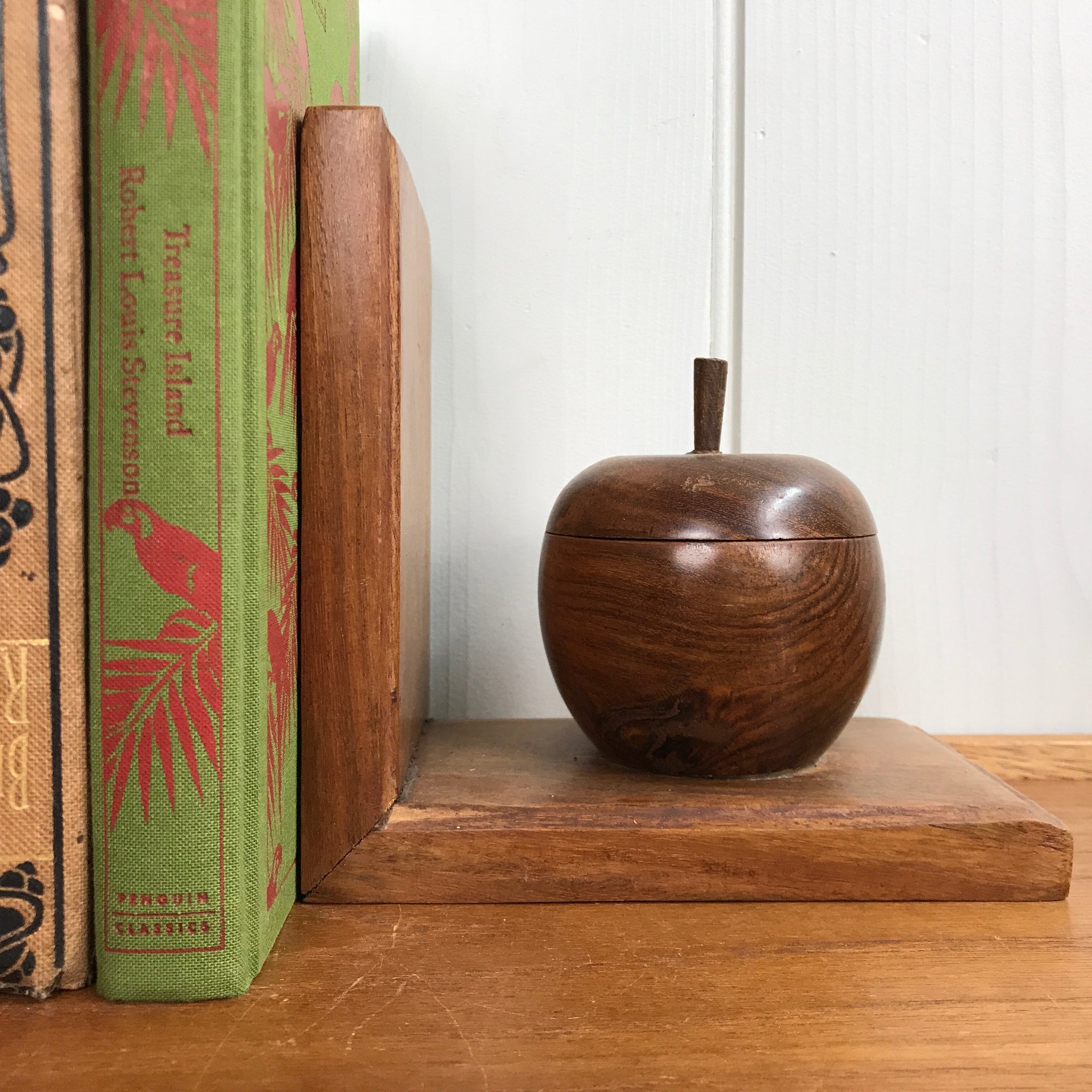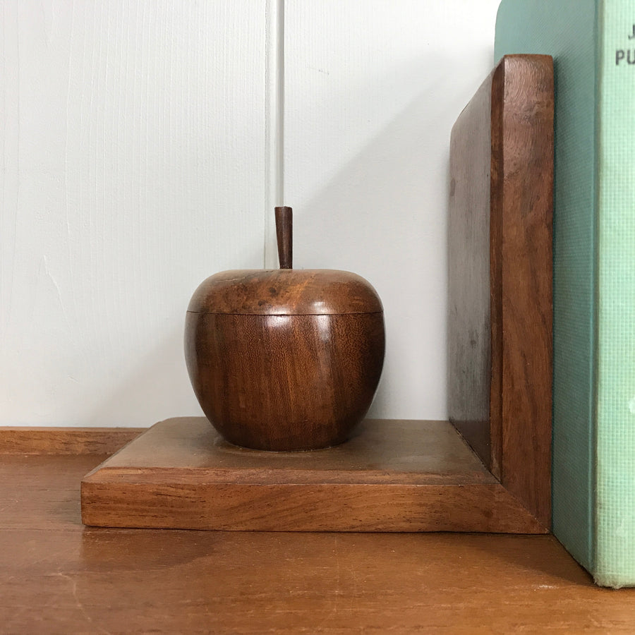A beautiful, decorative pair of hand turned vintage teak apple bookends.