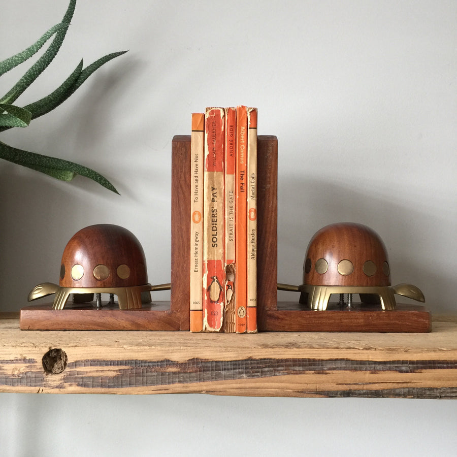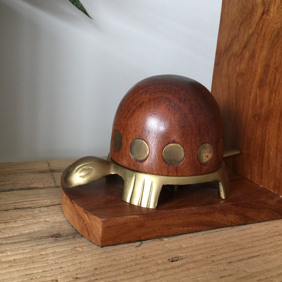 Vintage Teak & Brass Tortoise Bookends