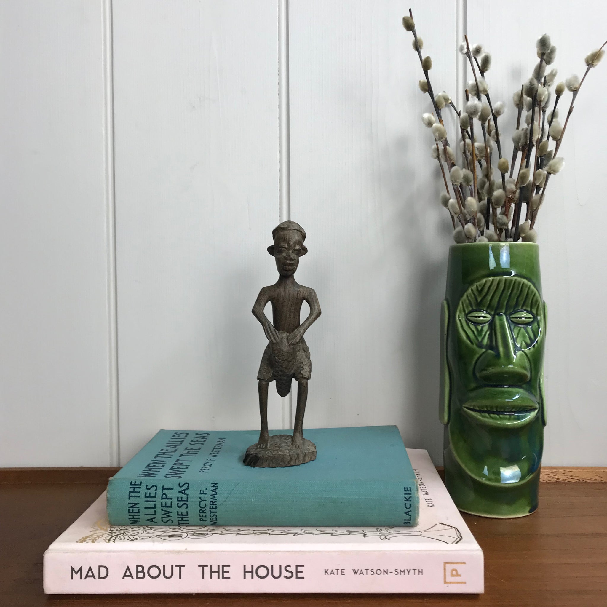 A stunning hand carved teak African man drumming - a unique piece that would look perfect styled in a vintage or eclectic inspired interior.