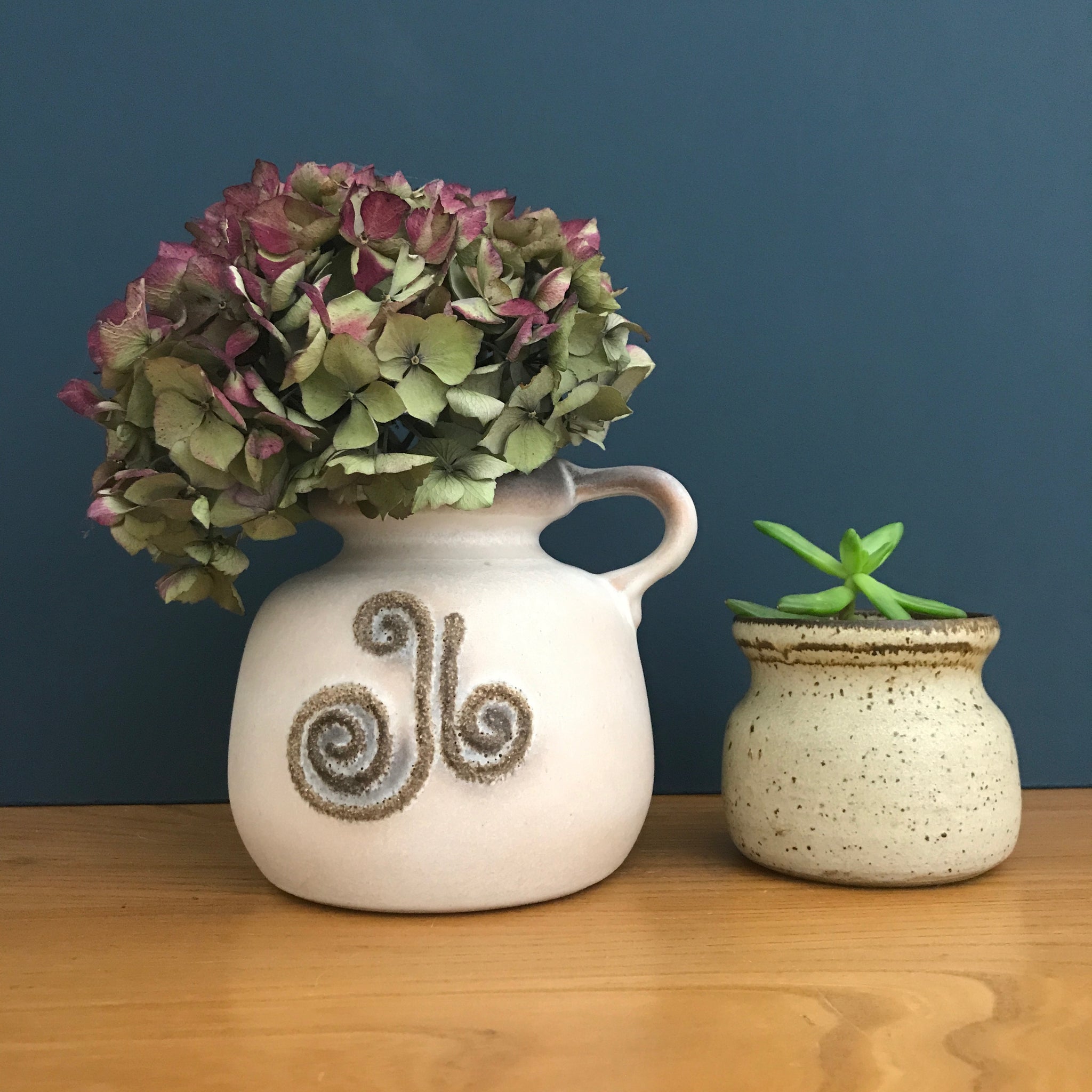 An East German vase by VEB HALDENSLEBEN in lovely brown/cream tones (shown on left). A superb vase to add to any Mid Century cermanic collection.