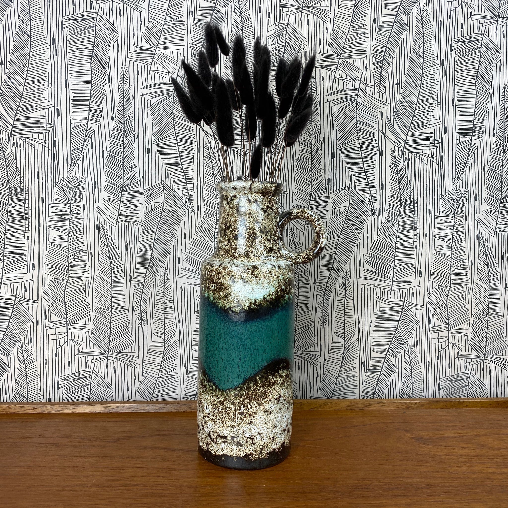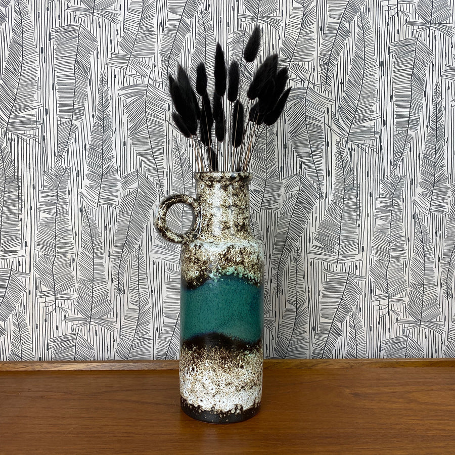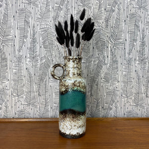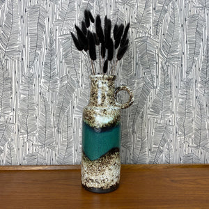West German Fat Lava vase featuring gorgeous teal blue, white and brown colours.