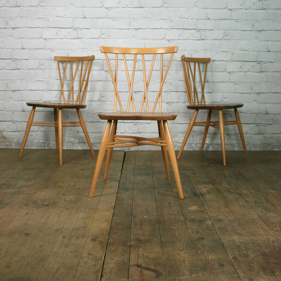 X3 Vintage Mid Century Ercol Candlestick Chiltern Chairs