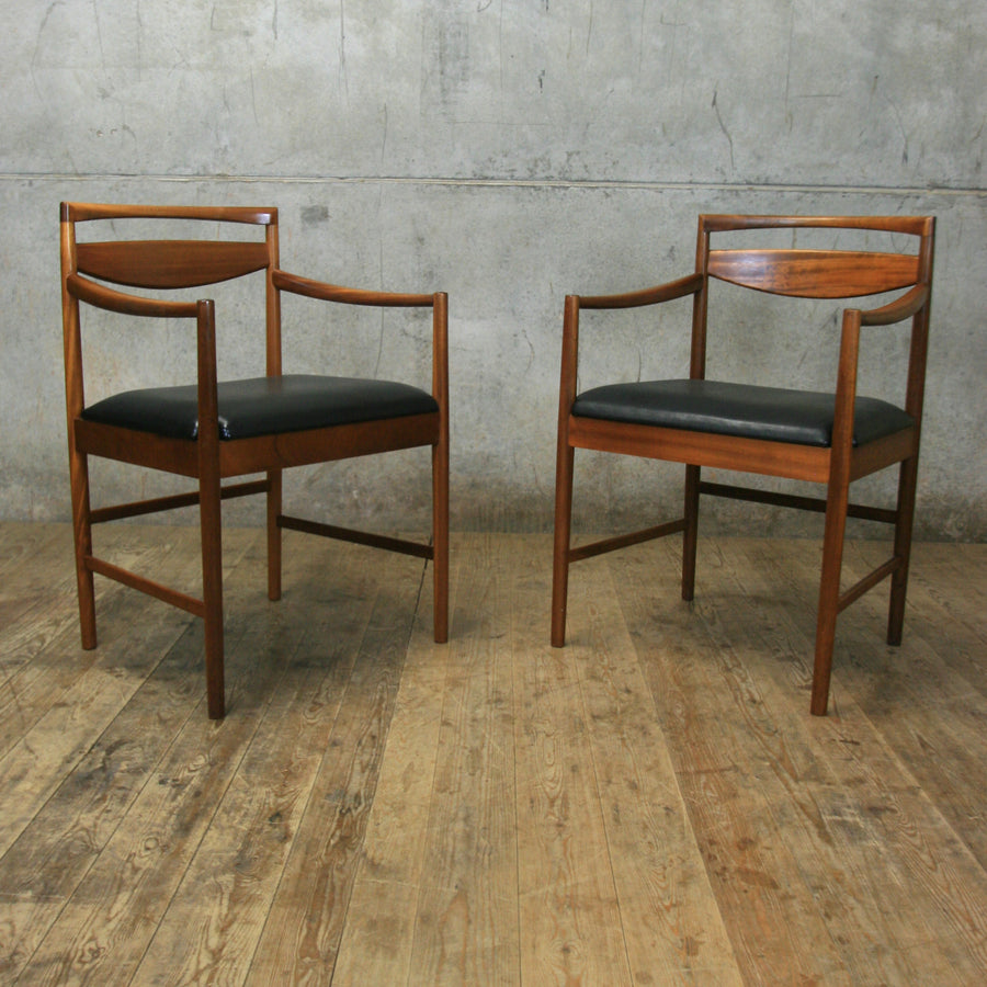 A beautifully designed & crafted set of six teak dining chairs (including two carvers) designed by Tom Robertson for A.H. McIntosh in the 1960s.